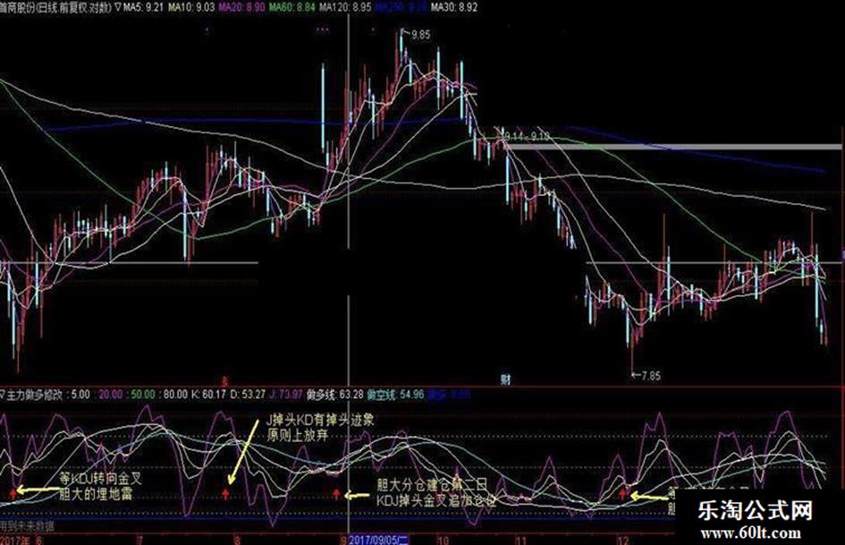 条件2:=CROSS(J,做空线) AND CROSS(K,做空线) AND CROSS(D,做空线);
