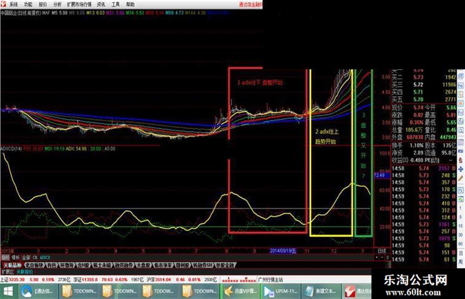 Adx是趋势指标,表示趋势的强弱,至于这个趋势是空,还是多,不判断,仅仅表示趋势的强弱,目前比较实用的用途就是用来判断入场点,不做其它用途 这个指标是从外汇的mt4里面搞出来的 对应通达信的DMI 但是那个很不清楚 侧重点也不是adx 就编写了这个 多空不判断哦 只判断趋势强弱 给那些还在盘整里苦苦挣扎的同志们参考 买进去它跌 卖了它又涨 这肯定就是盘整阶段别伸手 等趋势明显了再进去 做一个趋势跟踪者
