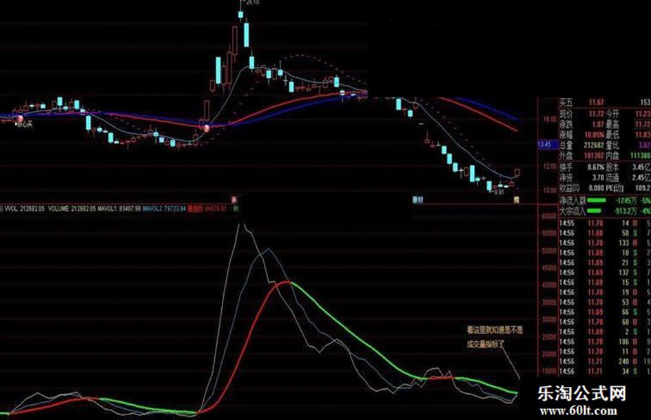 很多人偏爱成交量,记得刚入股市的时候就听人讲炒股要看成交量,可我对VOL成交量指标一直没看好,忽高忽低的柱子把我头都看晕了 有时看股价已经涨得很高了,但成交量并没放大,有的成交量放大了,股价反而跌了......我还是喜欢看比较直观的线条指标。但有人让我做个量能指标,研究了两天就索性把成交量指标做成了线条的形状,一是我看起来比较直观,二是便于选股。也不知对大家有没有帮助?喜欢的可以试一试,有问题也可以指出,行也好,不行也好,大家留个言,以便以后改进,让你稳妥赚钱