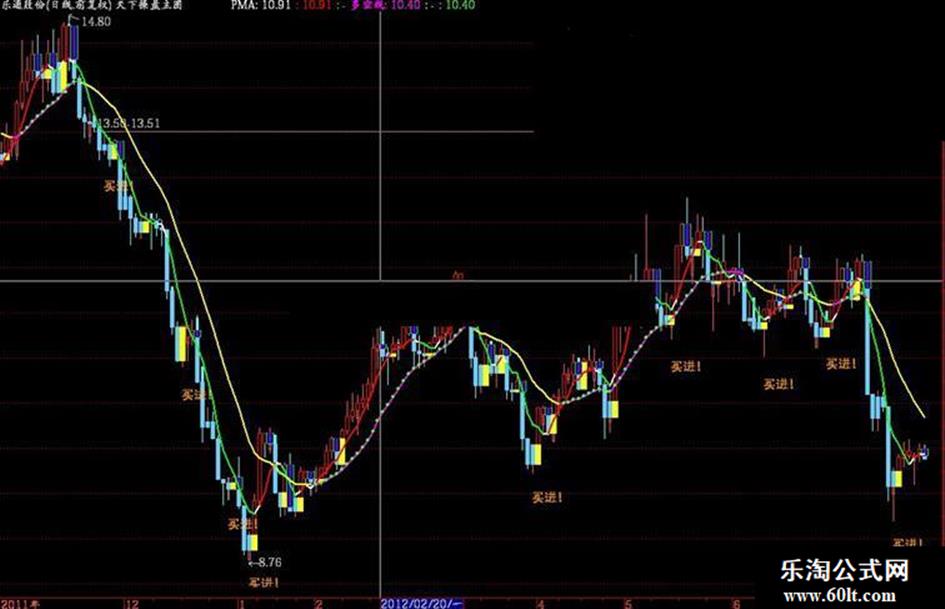 多空线:(20*X+19*REF(X,1)+18*REF(X,2)+17*REF(X,3)+16*REF(X,4)+15*REF(X,5)+14*REF(X,6)
