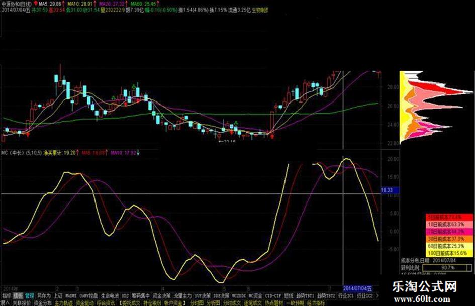 具体用法可以网上看指南针的mc指标用法视频,这是指南针一个经典指标。
