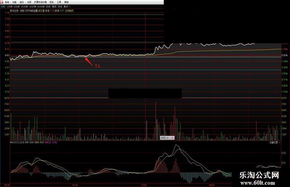 逆势操作系统(CDP)是一款系统自带的极短线的操作方法,适合于上下振荡的盘局行情,选择高卖低买的区间赚取短线利润。为便于T+0,特编写一个调用系统cdp-std系统主图日线数据的分时主图,分享给喜欢用的朋友。 PS:指标仅是工具,关键还要看使用工具的人,用的好是武器,用不好是自杀器具。如果对CDP逆势操作系统不熟悉的,建议在使用之前去百度学习。