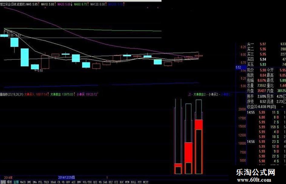 STICKLINE(CURRBARSCOUNT=2,小单卖1,大单买入1,2.2,1),COLORCYAN;