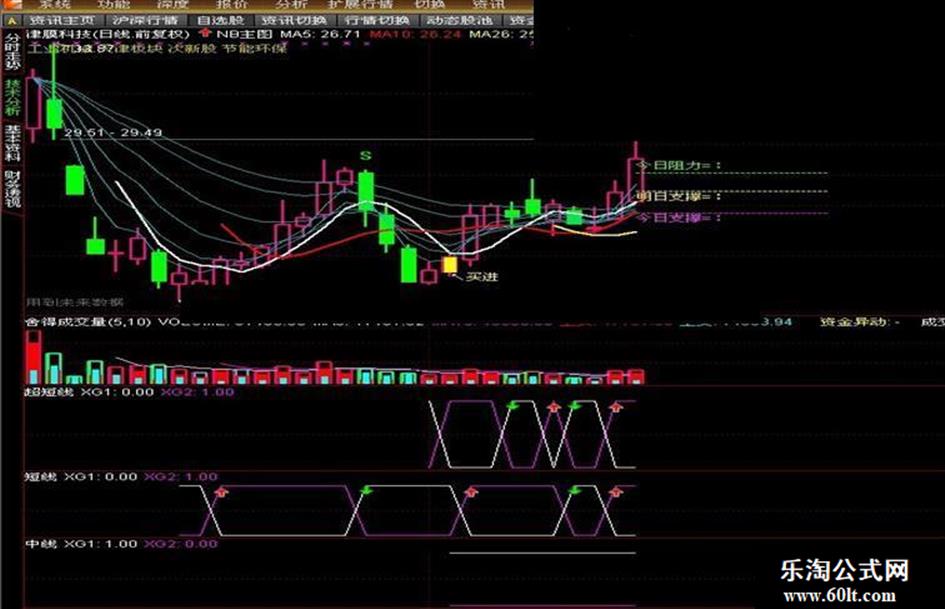 DRAWTEXT(FILTER(买=1,5),LOW-0.05,'↖买进'),COLORYELLOW;