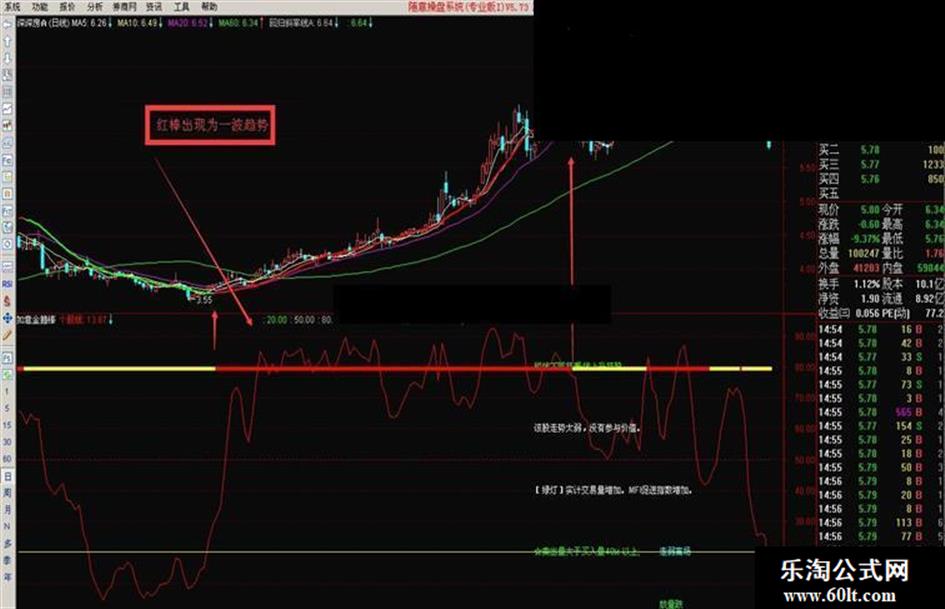 这是副图公式以专买主升浪为主,只有上涨趋势确认后才出现红棒信号,是很好的规避下跌时出现的亏损公式。由于只是一根金箍棒公式太单调了,为了便于好看所以添加了千股千评等其它指标。本指标卖点是有点滞后,卖可看20日线,破了就出,也看其它有公式指标。做为短线一般出现红棒买入基本都有赚,可以说出手就赢。公式暂时加密,原码星期六晚上发出。 有人说导入的公式只是就一条虚线,如有谁真的出现这样,请截图我看看