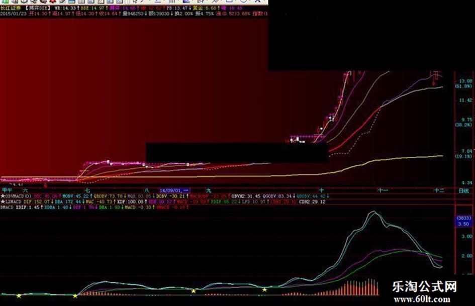 DRAWTEXT(CROSS(JGL,0)AND xdif>REF(xdif,1),DEA*0.9,'★'),COLORYELLOW;