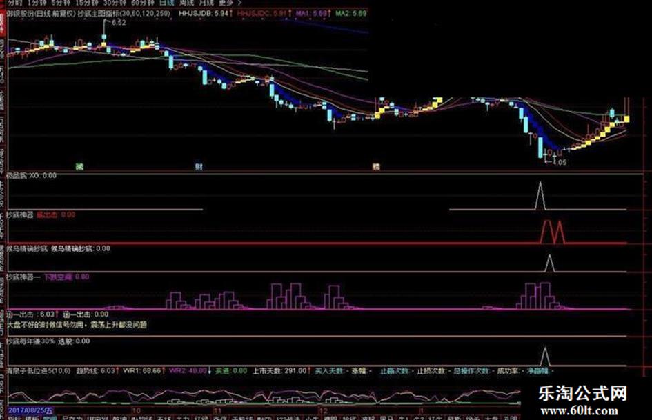 注意底:=IF((BB-AA)/AA>5 AND 趋势<12,50,0),STICK,LINETHICK2,COLOR00FF00;