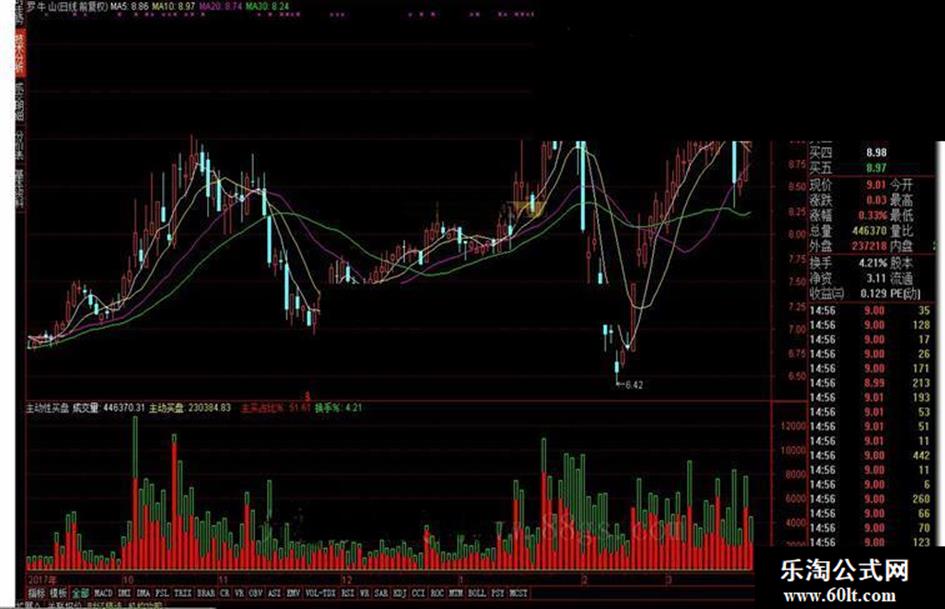 主买占比%:主动买盘/VOL*100,POINTDOT,COLORRED;