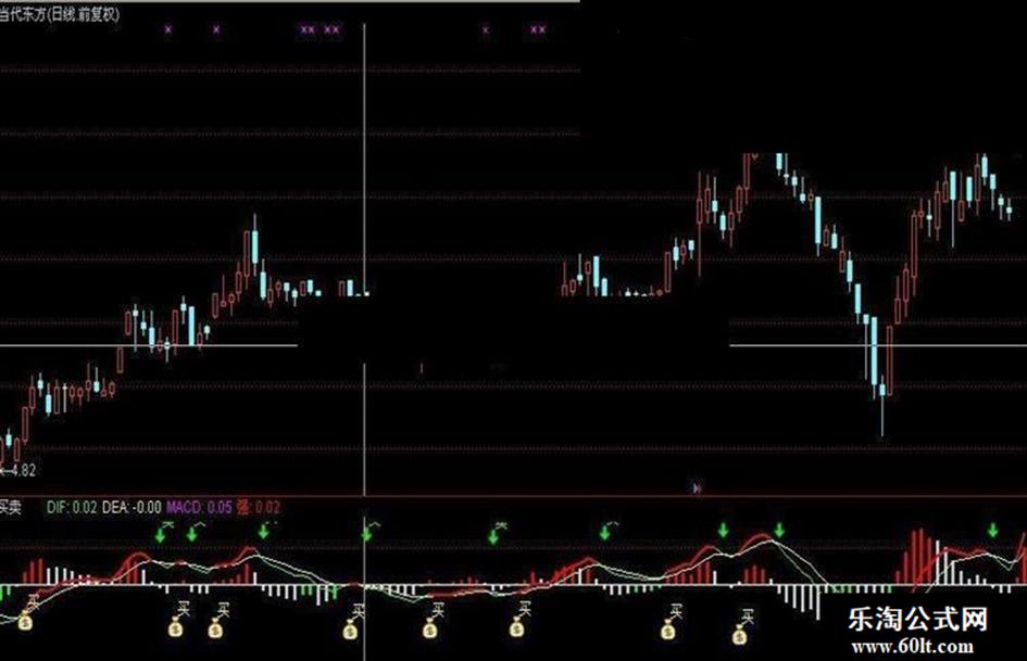 DRAWTEXT(CROSS(DEA,DIF) ,H*0.04,' 卖'), COLOR00FF00,LINETHICK9;