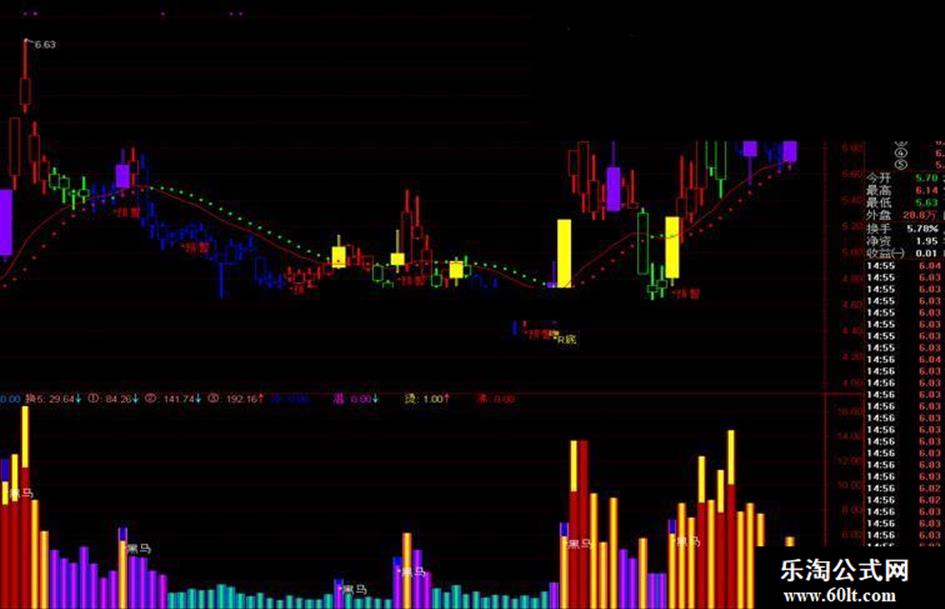 操作技巧;{蓝K持币} {红K持股} {紫K买进} {黄K加码} {绿K洗盘}