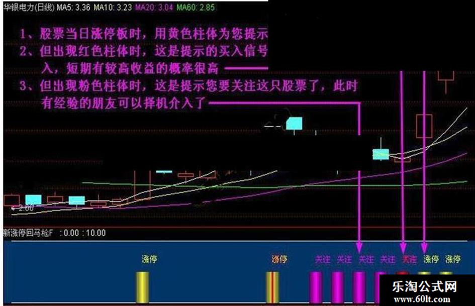 1、买入的股票建议是走上升通道的,简单方法就是20日线和20周线都是向上的。 2、涨停板后短线洗盘回调的最低价,一般会回到前面某个涨停板阳线的三个支撑位附近(均价线、二分位、下半身),因此涨停板后的13个交易日内在支撑位附近如果出现买入提示则是绝佳买点! 3、超短线机会:涨停板后的第二天,股价盘中回调到涨停板这天的分时均线或二分位附近时,是超短线的买入机会,第三天在第二天的最高价附近获利卖出!