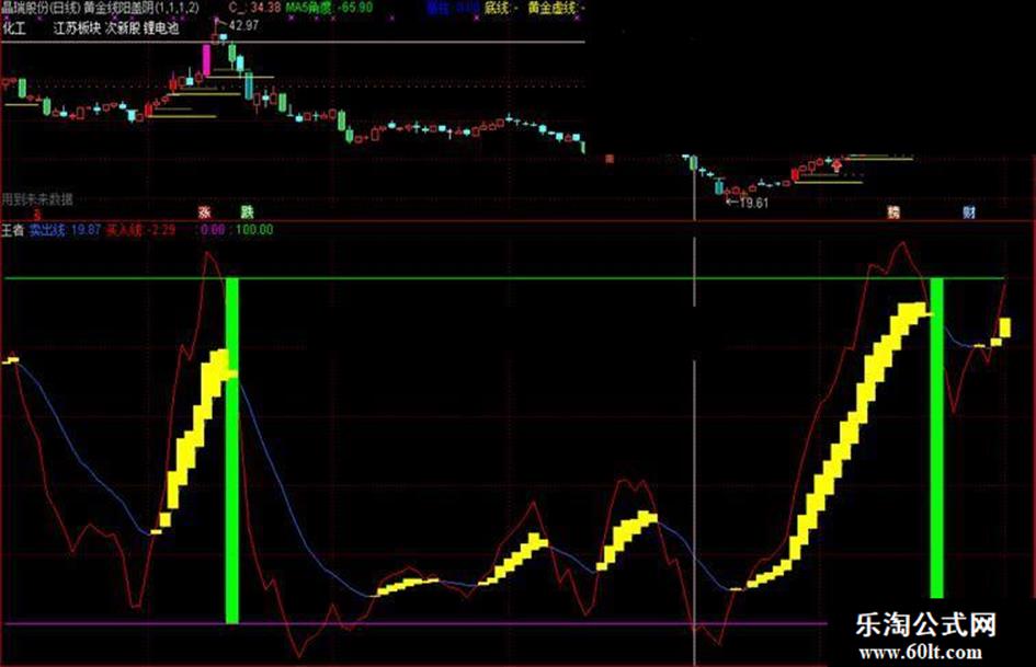 底部红线上传蓝线为买入,红线接近绿横线,或下穿蓝线或出现绿粗竖线为卖出,具体自己揣摩参考