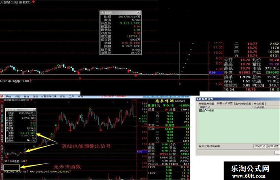 指标分副图公式和预警公式,不公阳线能选股和预警,阴线也能选股和预警,副图公式无未来函数(如果有未来函数,通达信会在副图左下角显示“用到未来数据”),加密但不限时,不喜欢加密的不要下载