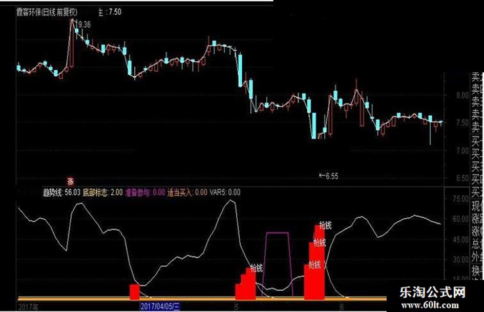 进入抢钱:STICKLINE(VAR5>REF(VAR5,1),0,VAR5,7,0 ),COLORRED;
