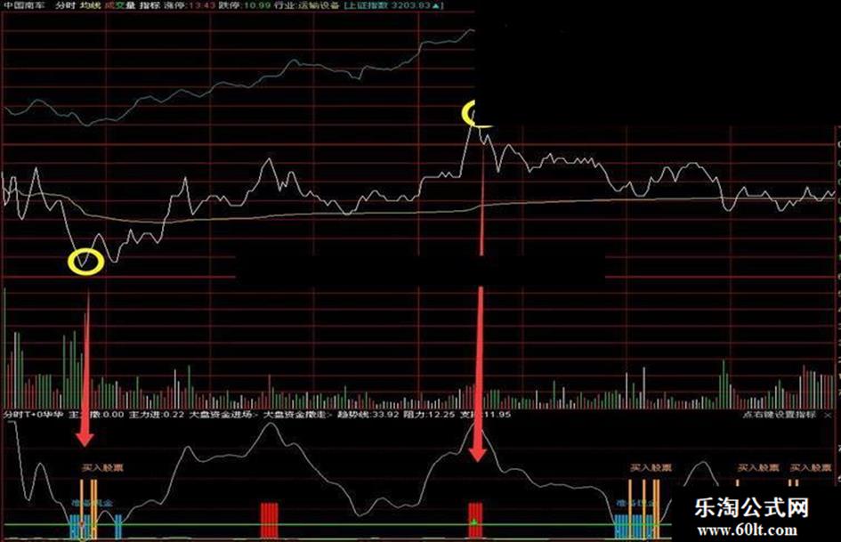 该指标为分时图幅图指标,黄色柱为买入信号,红色柱为卖出信号,同一时段相同信号出现越密集说明指示越强,当在黄色柱同时出现向上红箭头时,指标指示成功率最大可达百分之95以上,向下绿色箭头和红色柱子同时出现时,说明有主力在抛,卖出后一般股价下跌可能达百分之85以上,若获利可了却半仓,改分时指标准确率极高,本人自用,适合做波段股。