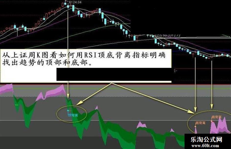顶背离:IF(RS1,RSI5,DRAWNULL),CIRCLEDOT,COLORFFCC00;
