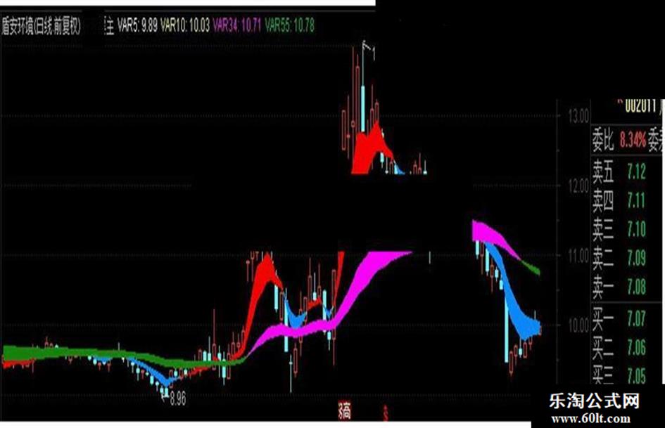 1,此两组彩带分别表示趋势(34日均线和55日均线)和操盘(5日和10日均线)。