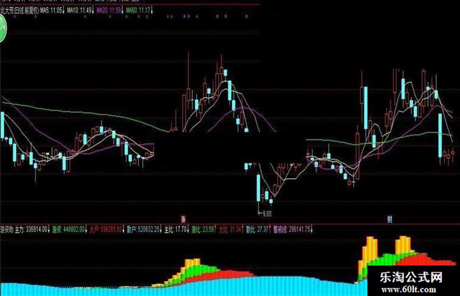 通达信【筹码转移力量】副图指标 精准捕捉个股强弱转折点 红柱即转强信号源码