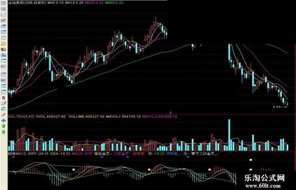 低位金叉:IF(CROSS(DIFF,DEA) AND DIFF<-0.1,15,DRAWNULL),COLORYELLOW,LINETHICK4,CROSSDOT;