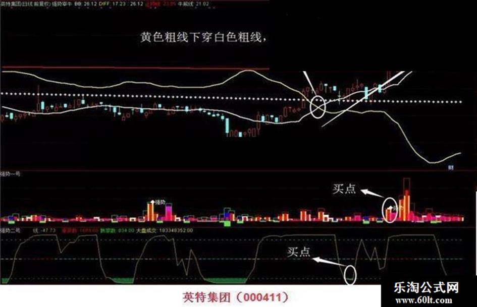 3、如果黄线明显向下运动,白线向上,此时基本可进,黄基本会穿白,如果碰巧 三点形成一个点,此时99%形成大牛,可以进入宰牛。当然也要看价量配合的好坏。