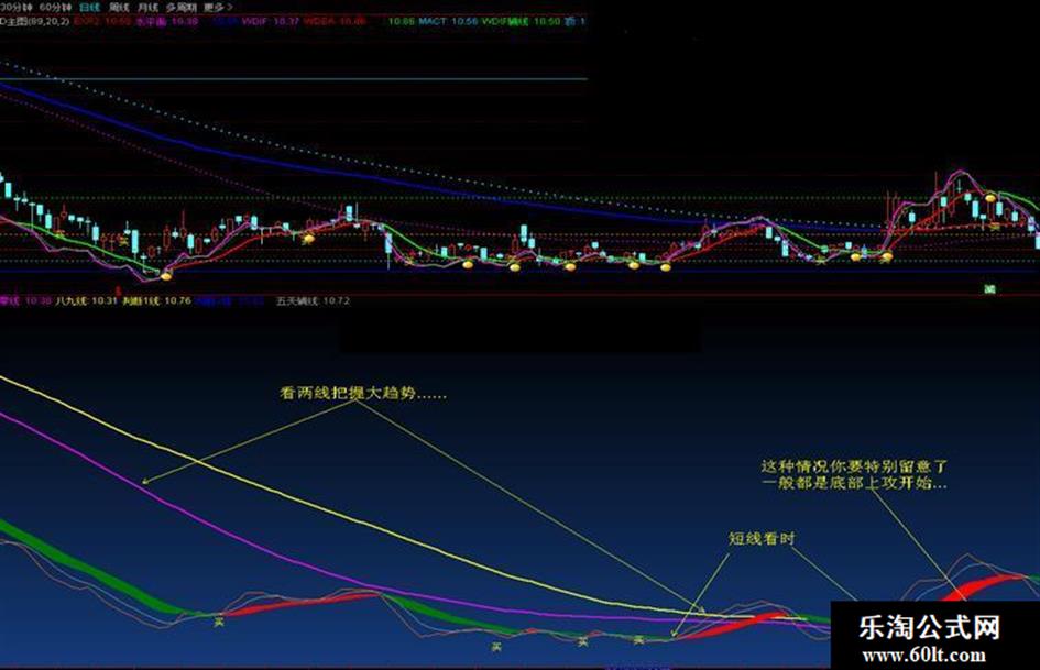 六零线:MA(CLOSE,60),COLORFF00FF,LINETHICK2;