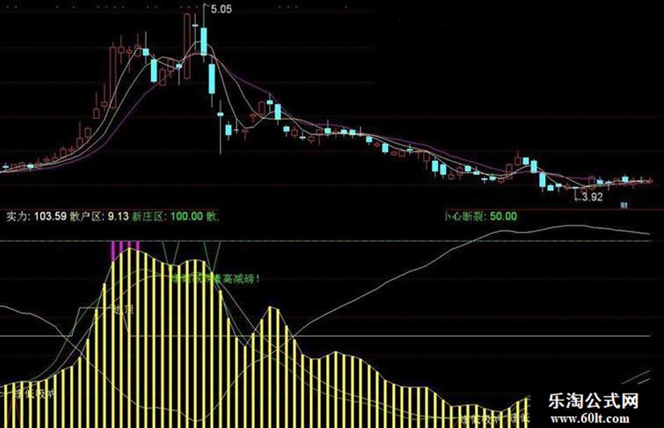 DRAWTEXT(CROSS(新庄,散户) AND 新庄>75,新庄,'逢高减磅!'), , COLORGREEN;