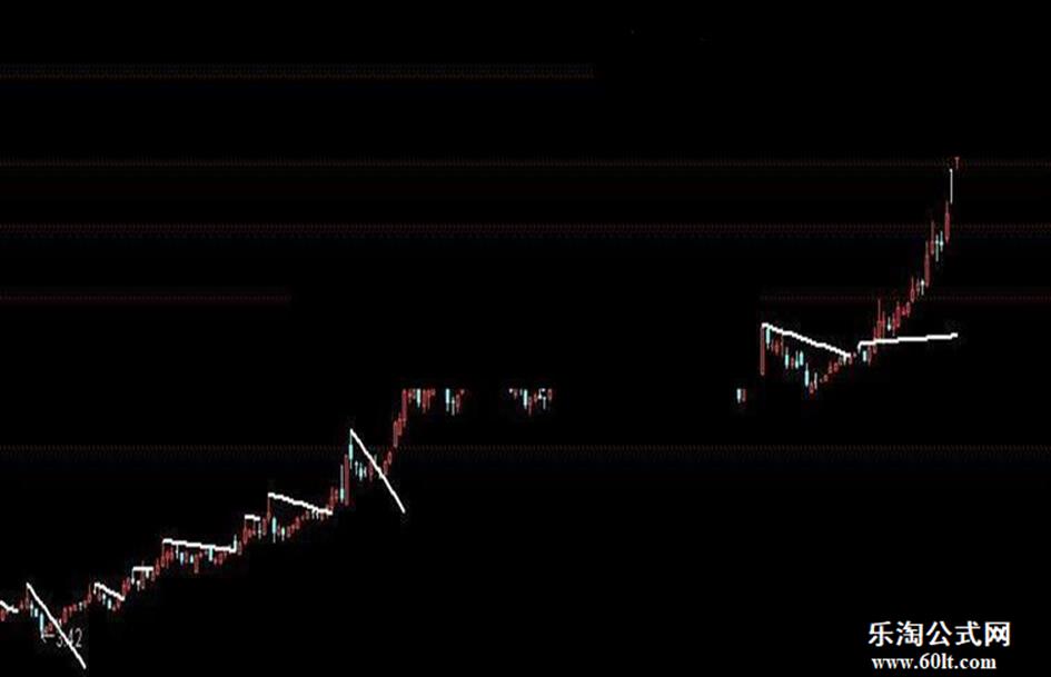 下降压力线:DRAWLINE(HIGH>=HHV(HIGH,10),HIGH,LOW<=LLV(LOW,3),HHV(HIGH,3),1),COLORWHITE,LINETHICK2;