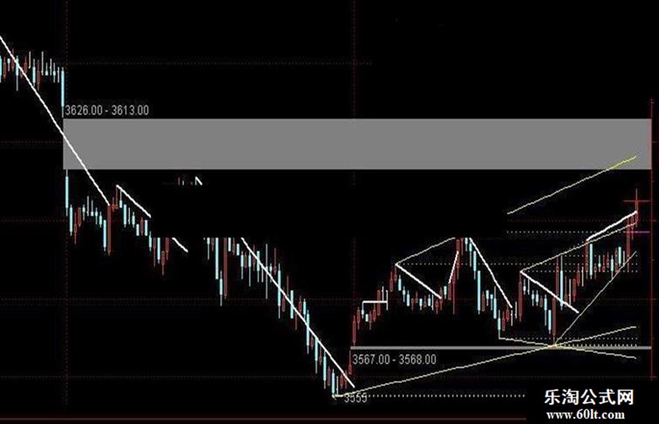 下降压力线:DRAWLINE(HIGH>=HHV(HIGH,10),HIGH,LOW<=LLV(LOW,3),HHV(HIGH,3),1),COLORWHITE,LINETHICK2;