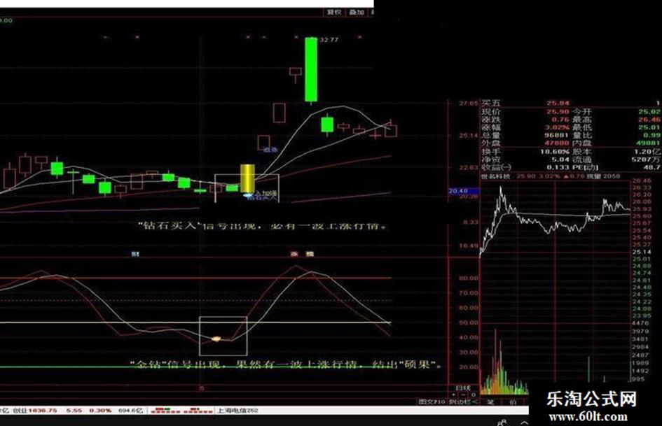 附:主图“钻石买入”指标(有未来函数)、副图“金钻结硕果”指标。
