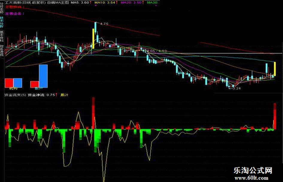 STICKLINE(资金净流>0,资金净流,资金净流,4,0),COLOR0000FF;
