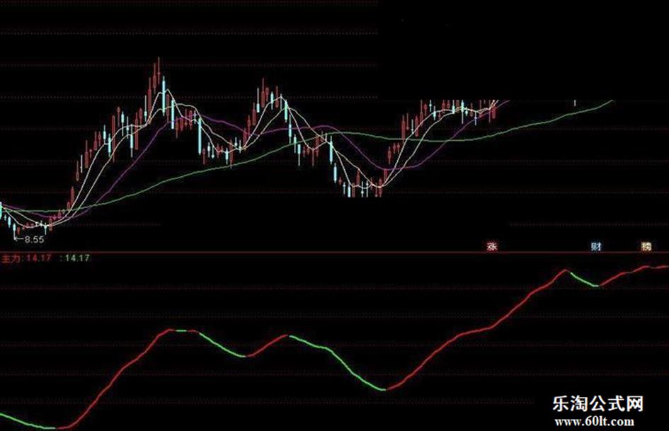 IF(主力>=REF(主力,1),主力,DRAWNULL),COLORRED,LINETHICK2;