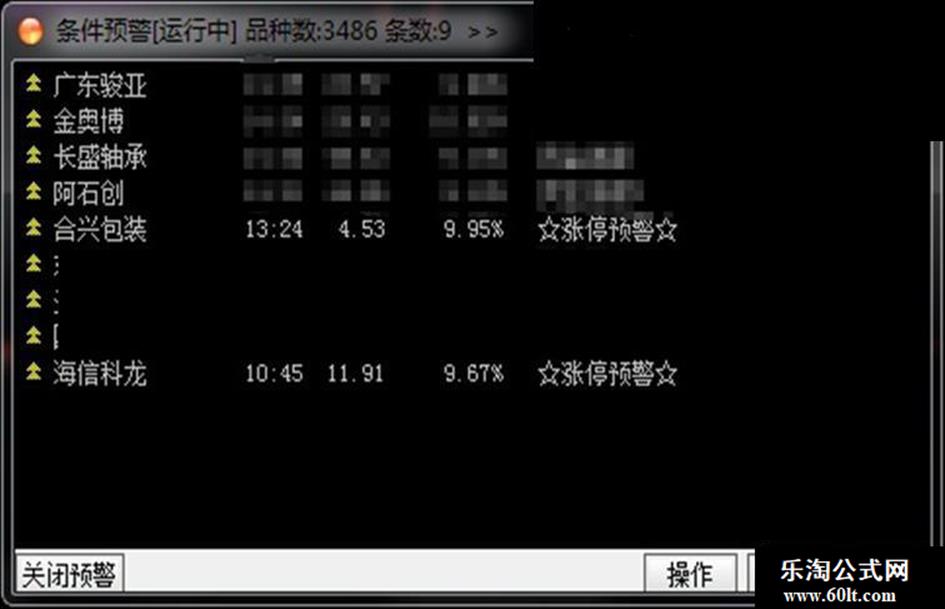 量:DRAWNUMBER(☆涨停预警☆,☆涨停预警☆*0.2,VOL),COLORYELLOW;