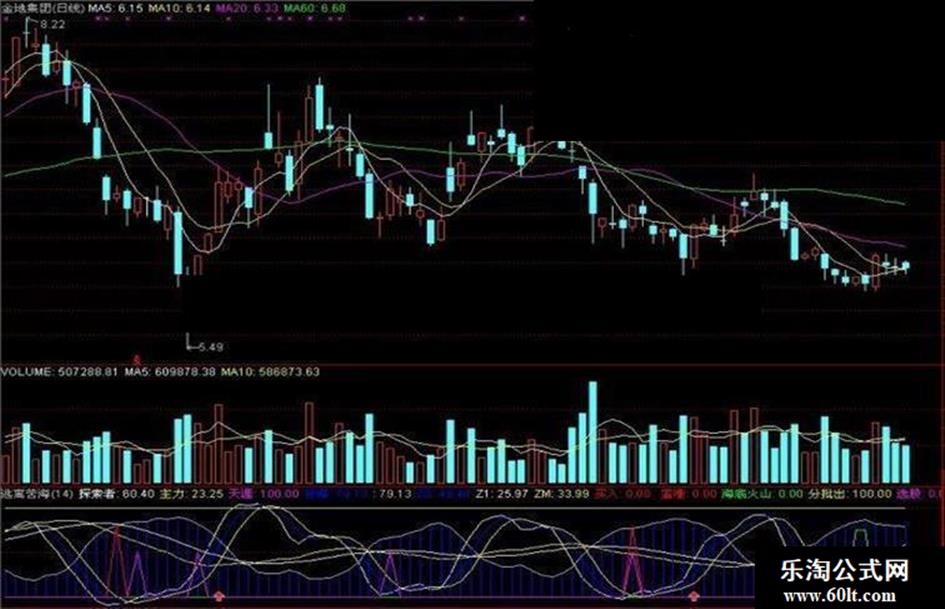 苦海: EMA(100*(HHV(HIGH,14)-CLOSE)/(HHV(HIGH,14)-LLV(LOW,14)),6),LINESTICK,COLORFF0000;