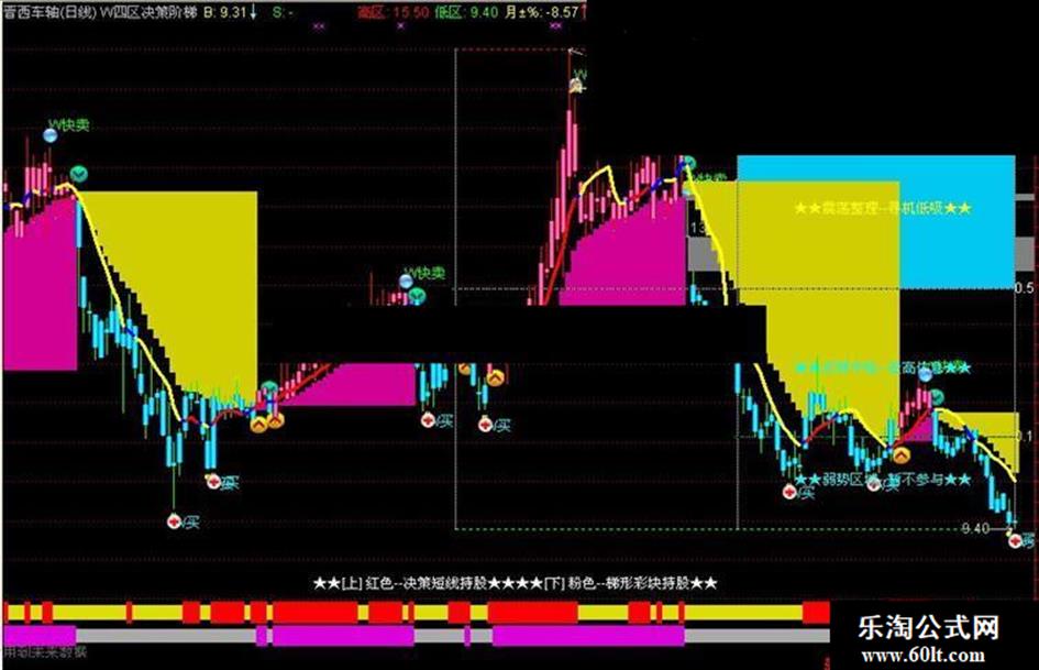 DRAWTEXT_FIX(1,0.3,0.87,0,'★★[上] 红色--决策短线持股★★★★[下] 粉色--梯形彩块持股★★'),COLORFFFFFF ;