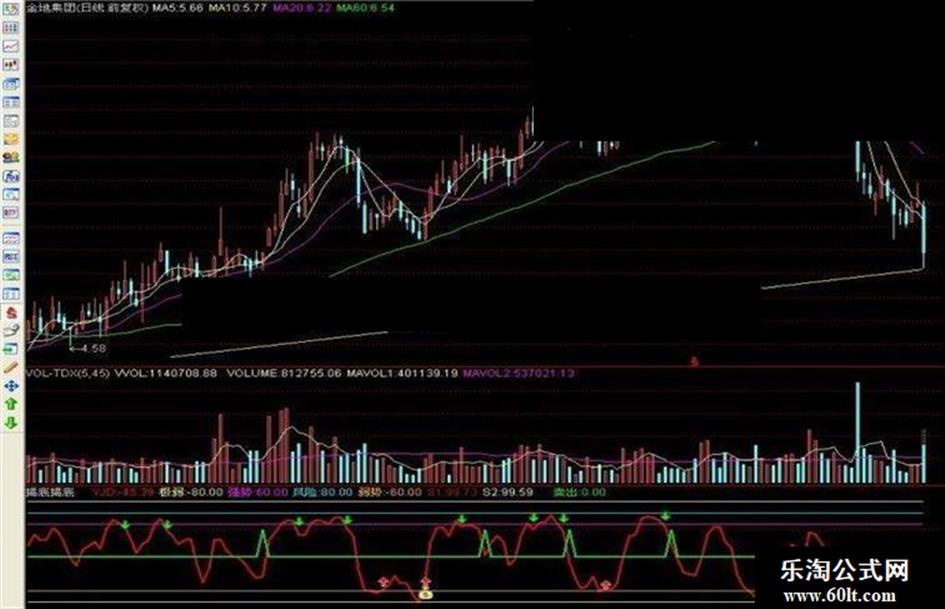 卖出: IF(FILTER(庄拉线>0 AND 庄拉线<0.5 AND VAR2E ,10)=1,50,0), COLOR00EA03,LINETHICK2;