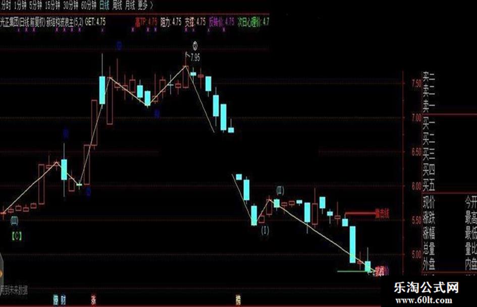 反转价:DRAWLINE(S>1&&CURRBARSCOUNT=5+1,反,ISLASTBAR,反,1),COLORDD00DD;
