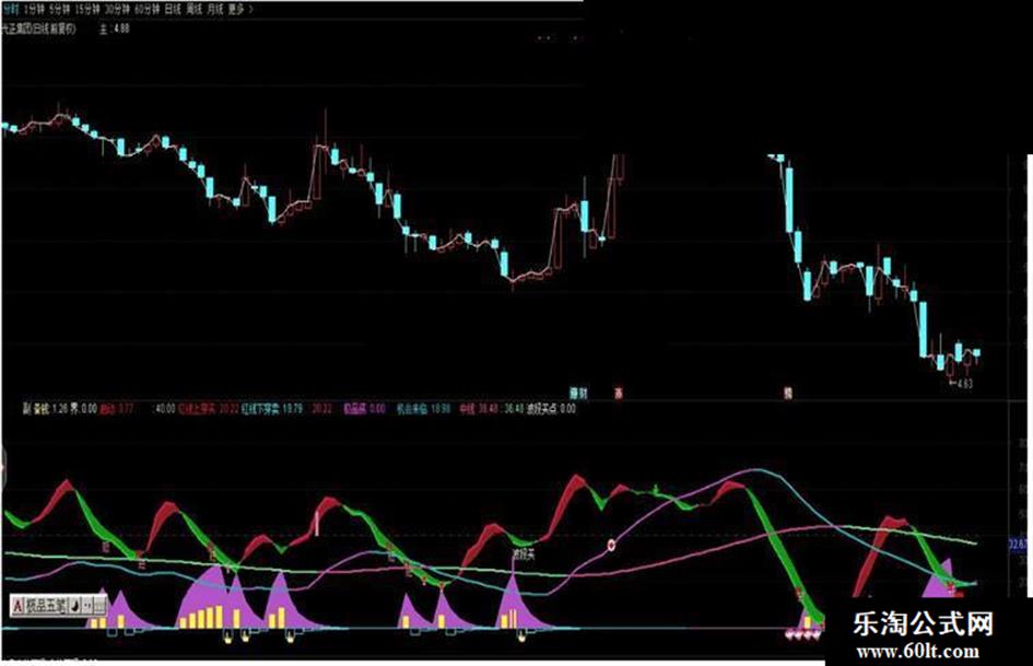 IF(红线上穿买>=红线下穿卖,红线上穿买,DRAWNULL),COLORLIMAGENTA,LINETHICK2;