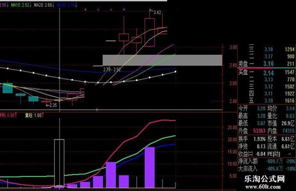 当满足条件净流>0时,在0和净流位置之间画柱状线,宽度为3,0不为0则画空心柱.,COLOR0000CC