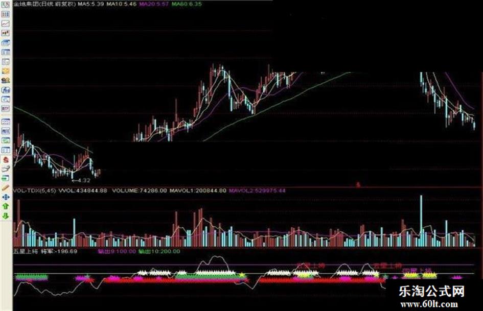 DRAWTEXT( FILTER(D3>100 AND A1>A2 AND A2>A3 AND A3>A4,13),180 ,'五星上将' ),COLORRED;