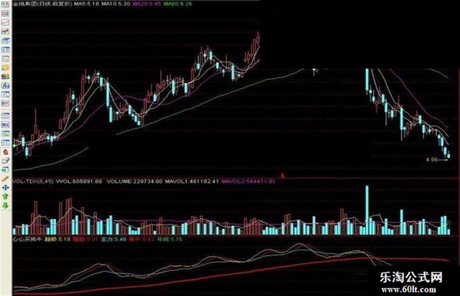 疯牛: DMA(MA(CLOSE+REF(CLOSE,5)/CLOSE*0.098,90),VOL),LINETHICK2,COLORRED;