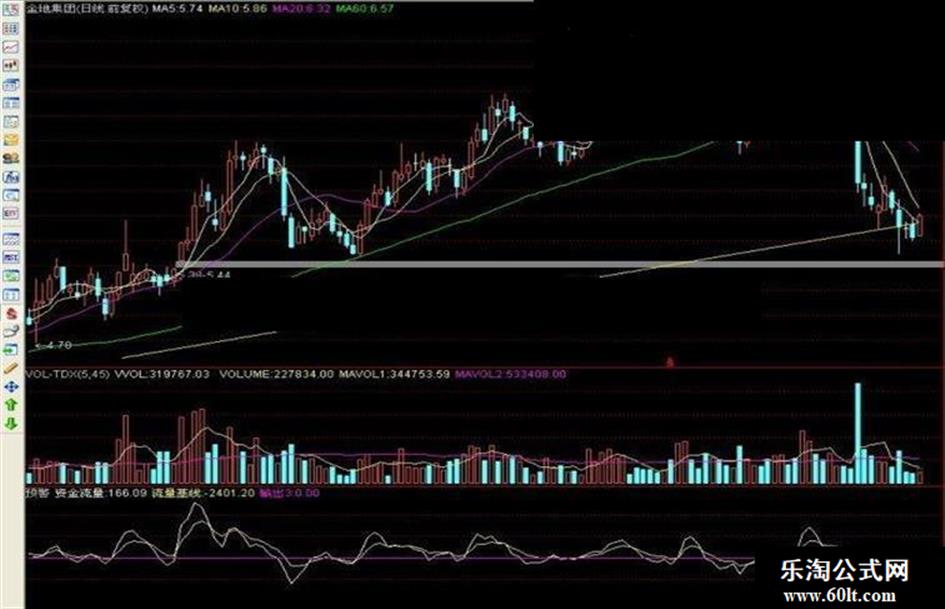QJJ:=(VOL / (((HIGH - LOW) * 2) - ABS((CLOSE - OPEN))));