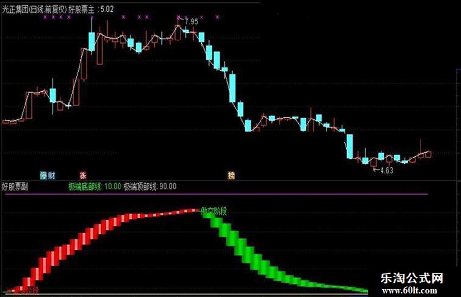 DRAWTEXT(CROSS(D,K) AND MA(CLOSE,5),D,'做空阶段'),COLORGREEN;