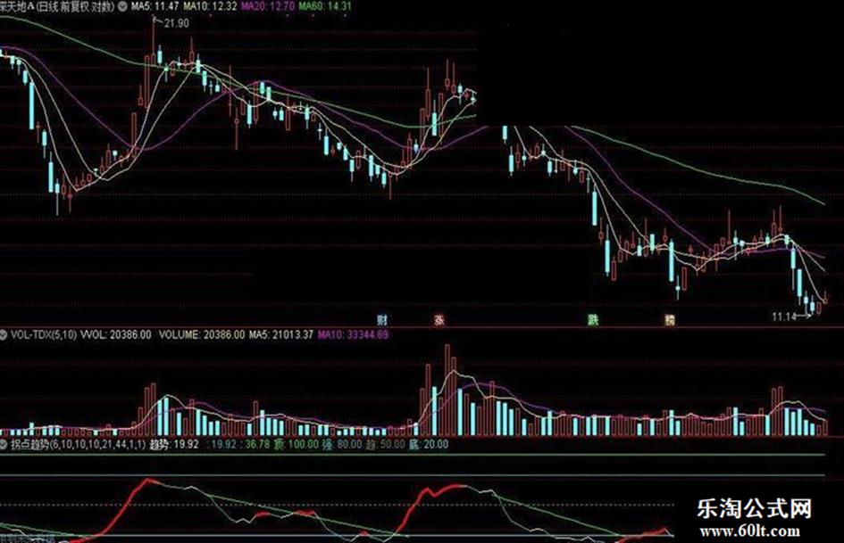 DRAWLINE(D>=HHV(D,13),D,D<=LLV(D,13),D,1),COLOR00FF00;顶:100,COLOR00FF00;