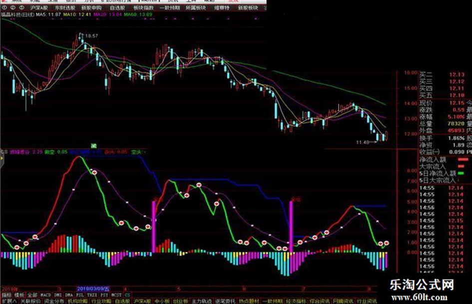波峰波谷:SMA(拉升力A,3,1),COLORFF00FF;