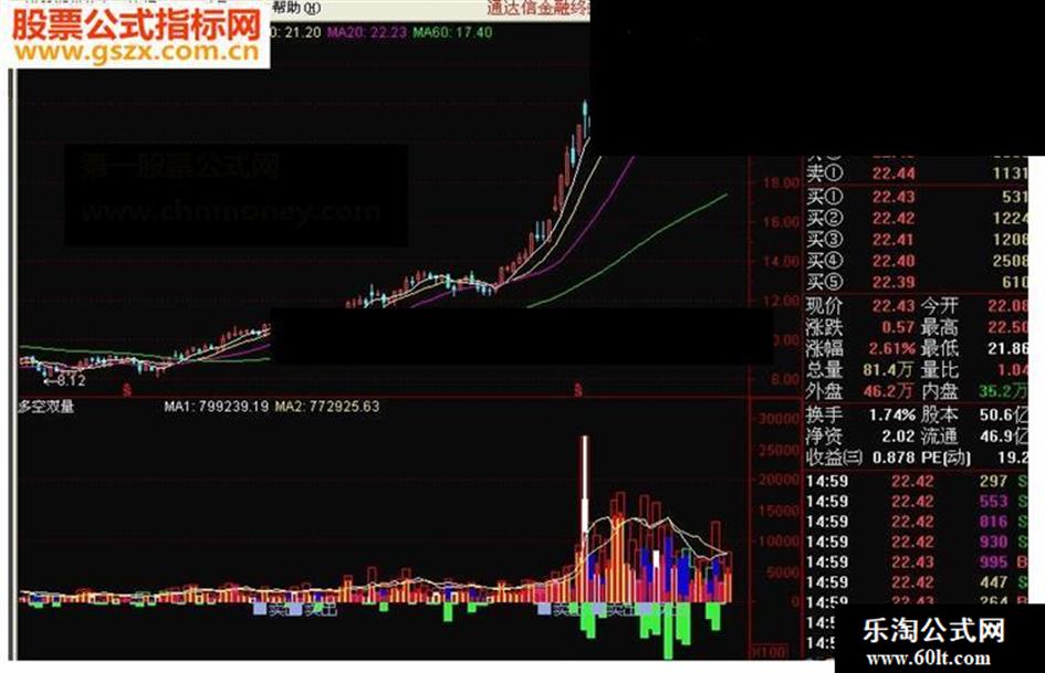 多头:STICKLINE((CLOSE > MA(CLOSE,30)),0,VOL,5,1),COLOR0000FF;