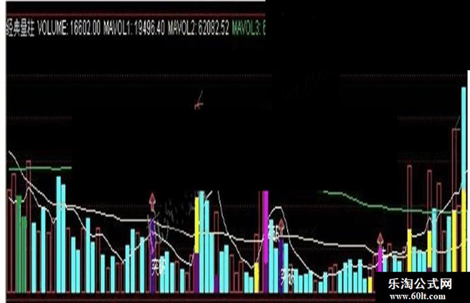 说明:黄色为立桩量,绿色长竖条为逃顶提示,蓝色与红箭头为突破,红色为牛,