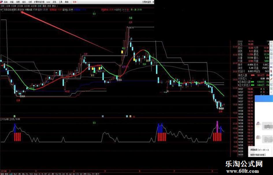 中趋势线:MA(CLOSE,55),LINETHICK1,COLORGRAY;