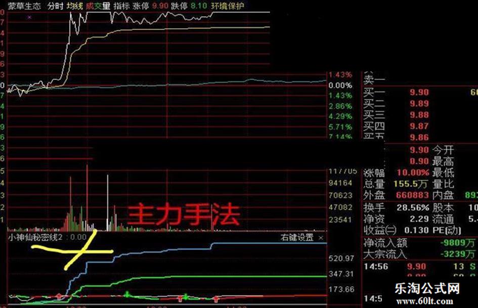 经大量实践证明,该指标对分时中主力手法的判断非常准确,擒住涨停是常事。 该指标作用:判断涨停趋势,根据主力手法痕迹判断是否会拉升,是否有涨停可能。 判断资金出入状况 。 判断是否有庄,是否有主力以及主力是否发力。