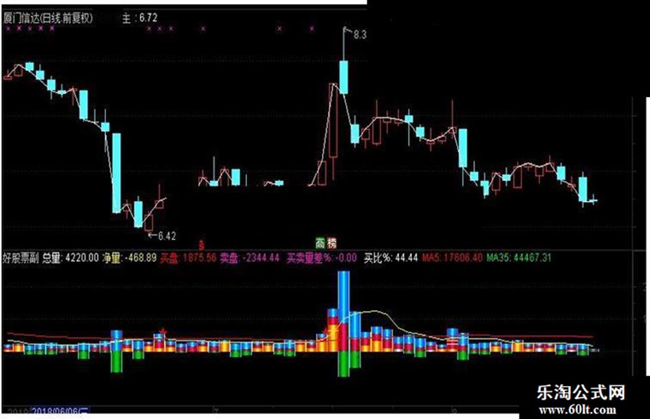 卖量:=(IF(CLOSE>OPEN,0-量*((HIGH-CLOSE)+(OPEN-LOW)),IF(CLOSE<OPEN,0-量*(HIGH-LOW),0-VOL/2)))*-1;