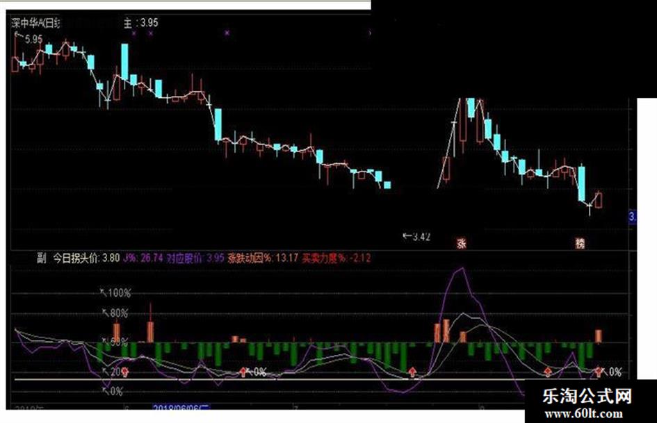 涨跌动因%:IF(L2有效显示数据=DRAWNULL,DRAWNULL,(TRADEOUTNUM-TRADEINNUM)*100/TRADENUM),COLOR0080FF,NODRAW;
